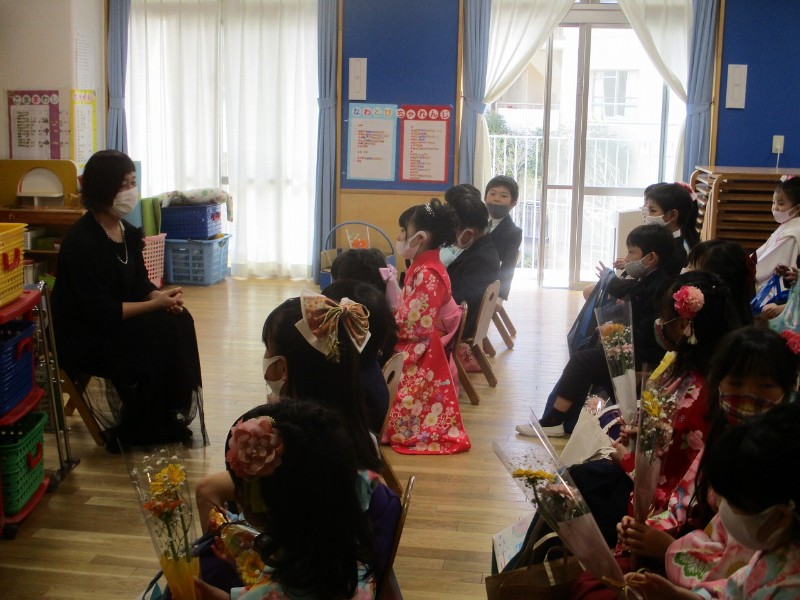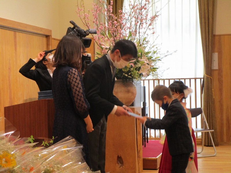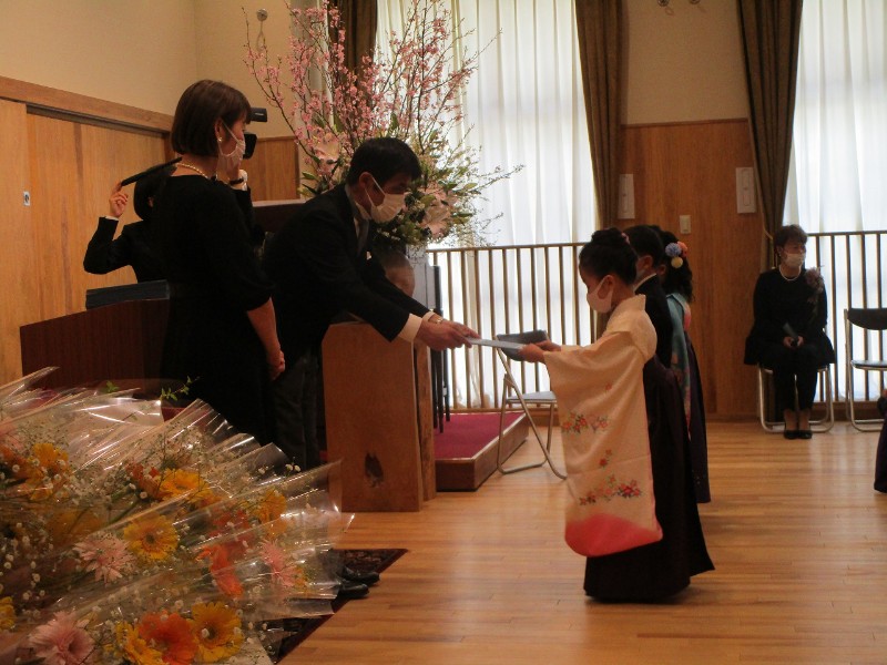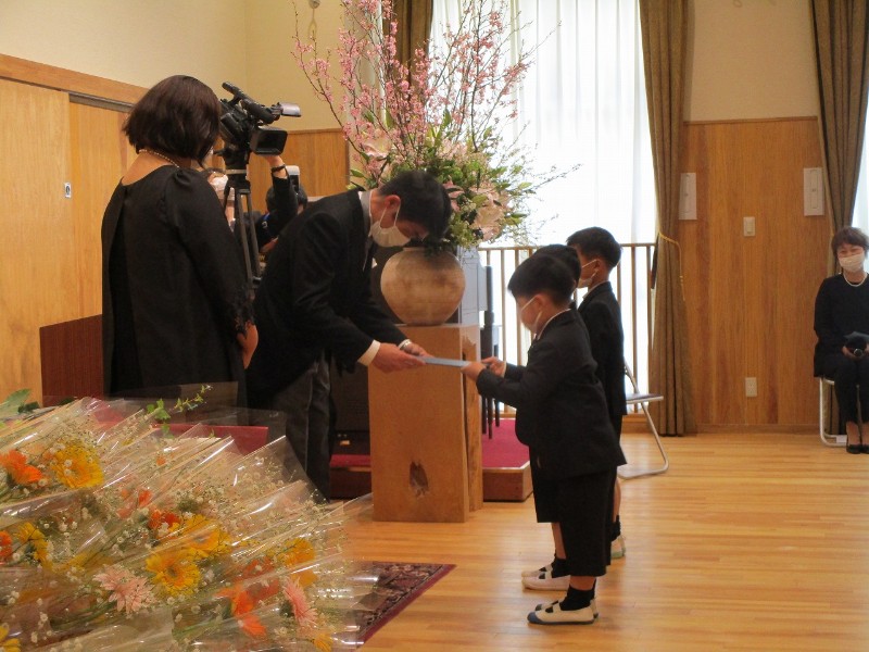 保護者の皆様方、子どもたちの成長に胸がいっぱいになった事と思います。そして在園中には、幼稚園の建て替えがあったり、コロナウイルスの影響があったり、たくさんのご理解、協力していただきましたこと、感謝します。