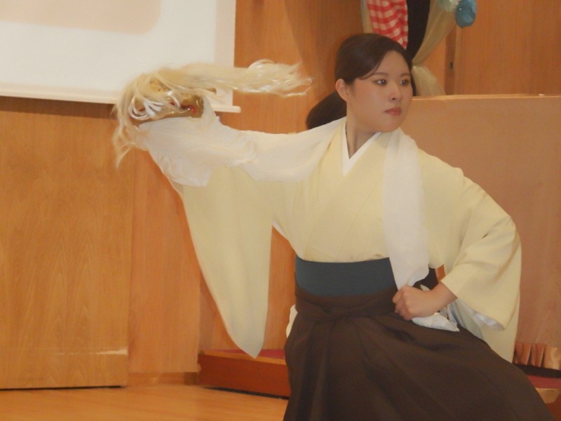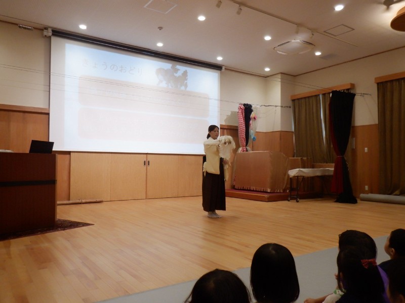グレース幼稚園卒園生のお姉さん(現在、大学生)が、子どもたちに日本舞踊を披露しに来てくれました。