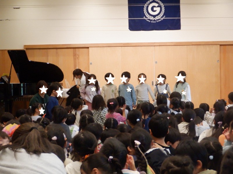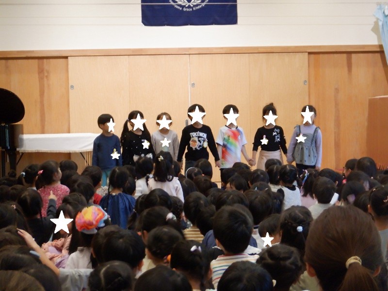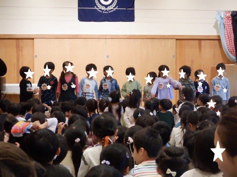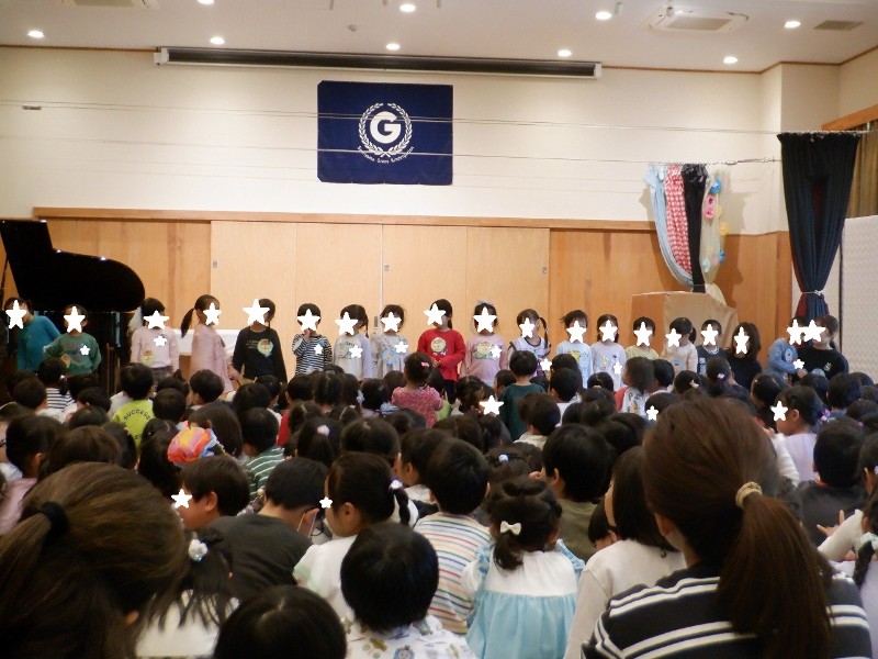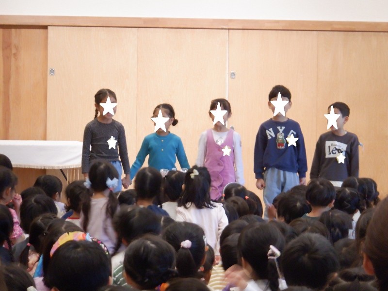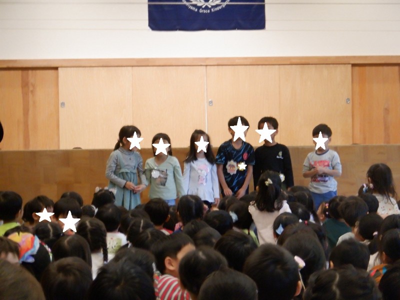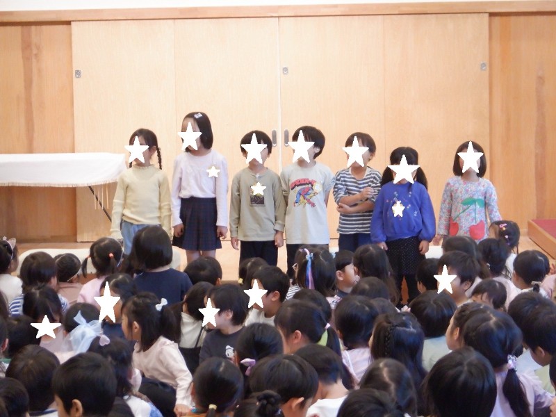 10月の誕生日会も先月に続き、年長組(うめ組)が司会をしてくれました。それも3~5歳児全員が集まって行う誕生日会です。