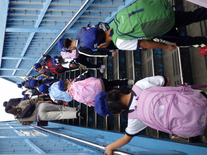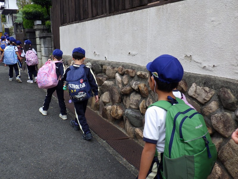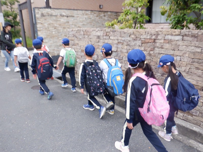年長・年少組はお友達と2人で手を繋ぎ、歩いて行きました。