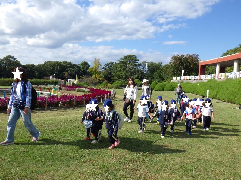年長・年少・たけのこ・どんぐり組は緑地公園へ遠足に行きました。