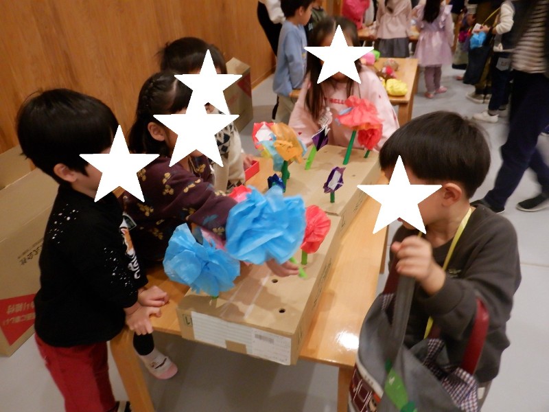 バザーをきっかけに年中組の子ども達がどんなお店をしたいか考え、アイデアを出し合いながら何日もかけ商品を作り、年少組を招待します。