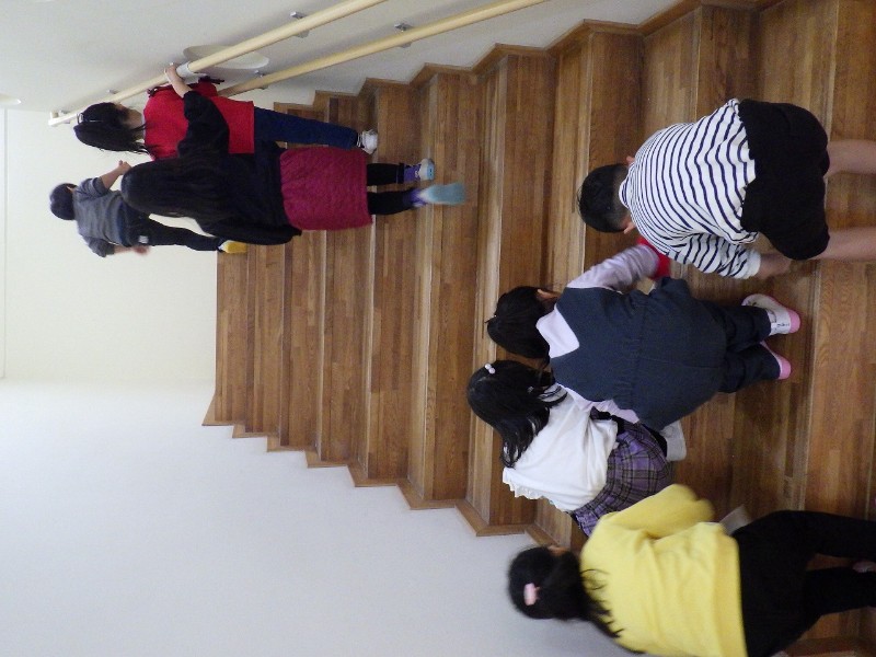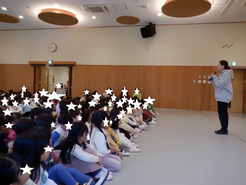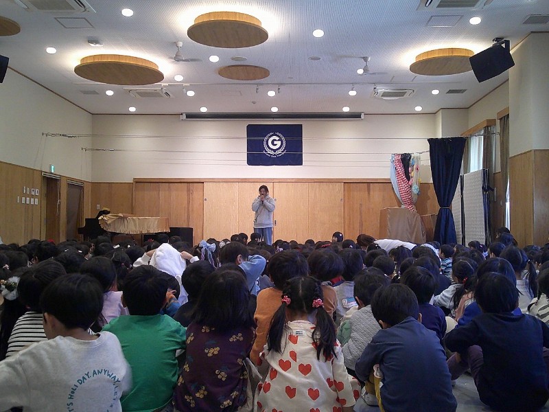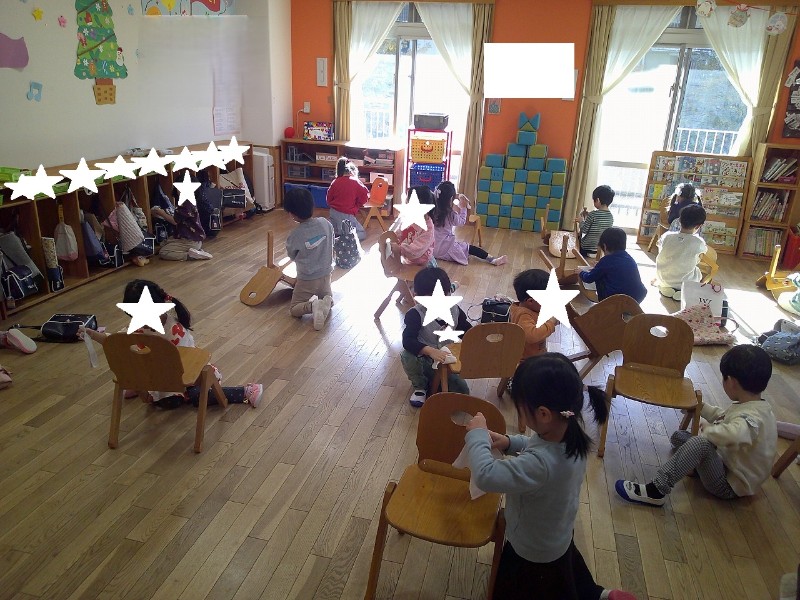 ホールに集い、園長先生や山崎先生、百井先生から話があり、冬休み中の過ごし方やクリスマスやお正月があることを聞きました。