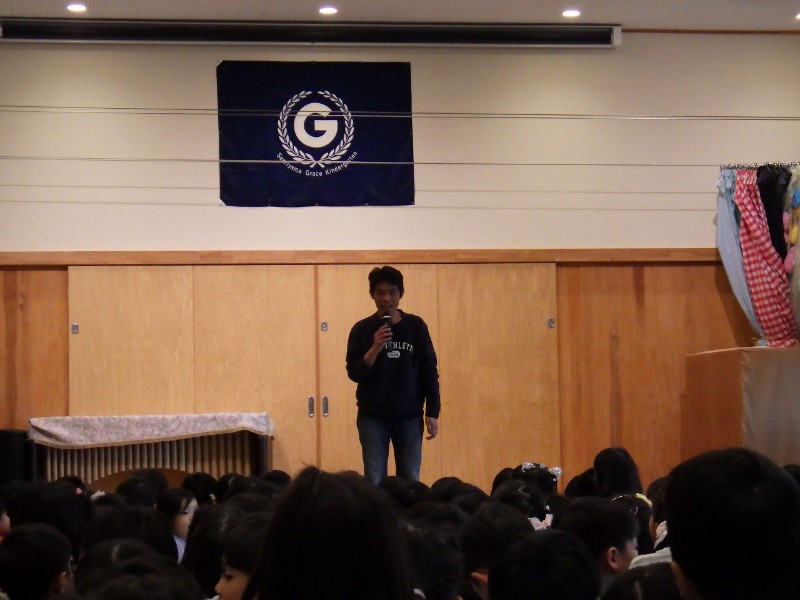 山﨑先生からは終園式の話から「外で遊んだり、お手伝いはしましたか?」と聞いたり、「これからの幼稚園、楽しく元気に過ごすためにはどうしたらよいかな」という話がありました。よく食べ、よく寝て、よく遊ぶことに加え、手洗いやうがいなどもしっかりすることで、病気にならず元気に過ごせると良いですね(*^▽^*)