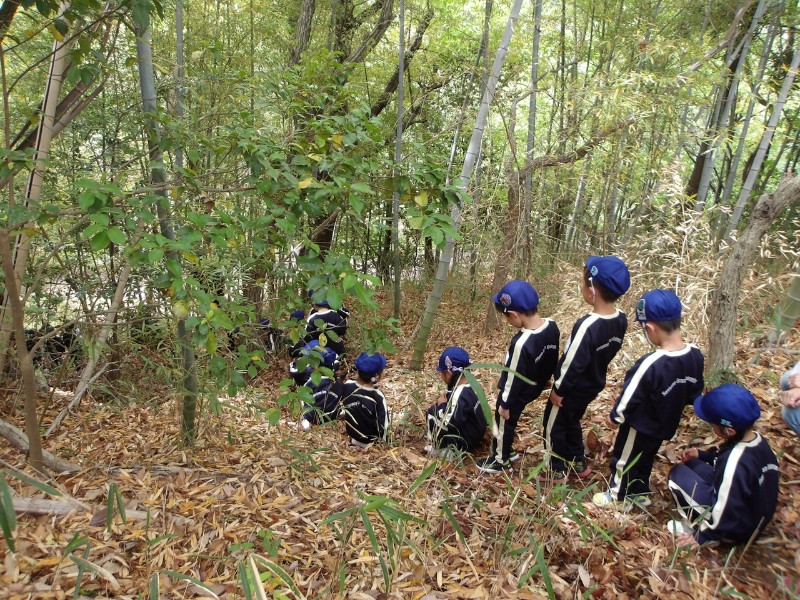 竹林を登って降りて滑って…何度もチャレンジする子がいたり、原っぱではたんぽぽを摘んだり、千里北公園でたくさん遊ぶことが出来ました。
