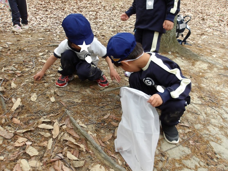 到着後は崖登りや、散策、虫探しなど思い思いに楽しむ子どもたち。落ち葉も沢山落ちてたので落ち葉のシャワーをしたり、どんぐりを拾ったりと楽しむ姿もありました。
